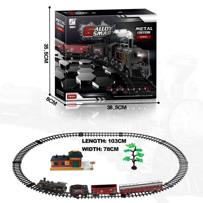 Залізниця 19060-6 78-103см,локомотив,пар/дим,3 вагони,вокзал,мет.+пласт.,муз.,світло,бат.,кор.,38,5