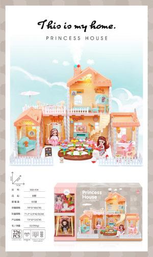 Будиночок 668-43A 2 поверхи, меблі, ляльки 2шт., гойдалка, мотоцикл, 226 дит., Бат., Кор., 71-43-13см